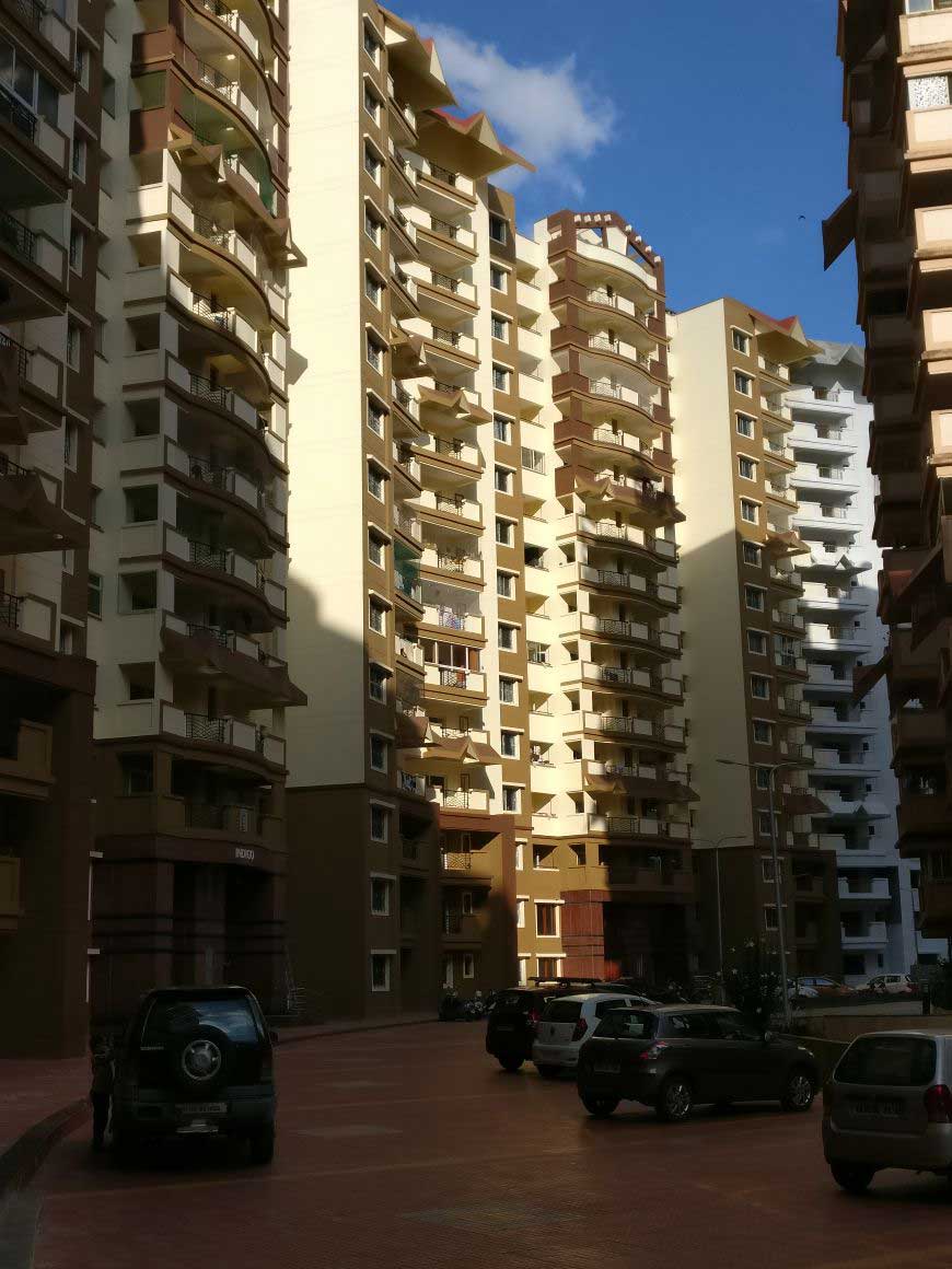 The structure is a Residential Apartment consists of 1 Basement, Ground and 14 floors. There are 7 towers with combined basements. The basements are meant for car parking. The top floors accommodate residential flats. The structural system is mainly with RCC framed structure with Columns, Core walls, Beams & slabs. The podium accommodates fire drive way, swimming pool and landscaped area.